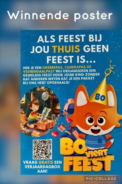Na veel mooie inzendingen is onze keuze gevallen op de poster van Tessa! π Haar ontwerp met de tekst βAls feest bij jou thuis geen feest isβ, raakt precies de kern van wat wij doen.