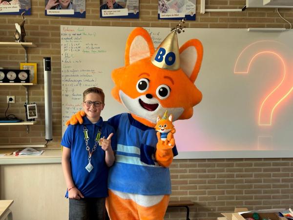 🎉Vandaag hield kinderburgemeester Rick van Laar een spreekbeurt over “Bo Viert Feest”. Als ambassadeur van de stichting bracht hij het verhaal tot leven. Mascotte Bo was ook van de partij. Ben of ken jij een kind die zijn/haar verjaardag niet kan vieren? Kijk op stichtingboviertfeest.nl.🎈